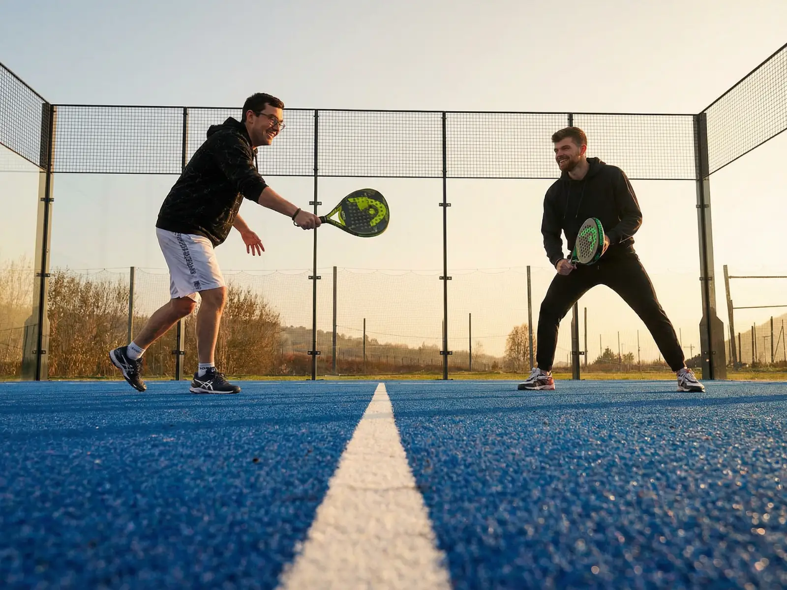 Le padel se joue obligatoirement en double — venez à 4 ou trouvez des partenaires sur place. Après votre session, le bar DAMA est là pour récupérer autour d'un verre !
